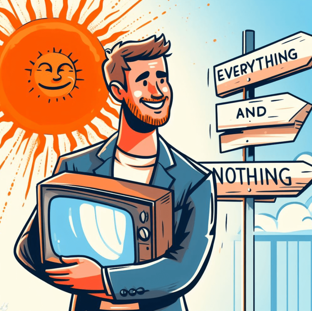 Los otros días fui a vender un televisor a una tienda de estas que te compran de segunda mano. No esperaba obtener mucho por él, pero me ofrecieron 10€. Aunque tenía la alternativa de venderlo por internet, el aburrimiento que me provoca el regateo y cuadrar horarios con el comprador me hacen que no me compense. El caso es que por esa ridícula cifra me dije a mí mismo que antes lo regalo, salí a la calle y cuando iba por la calle Mármoles abajo me dije que esa tele no volvía a casa. Y vi a un hombre mirando al sol con cara tristona y aspecto melancólico y le pregunté si quería una televisión. El hombre al principio no entendió lo que le quería decir, le repetí la pregunta y me dijo que “sí”. Se la di y se le cambió la cara, empezó a sonreír, le di el mando y salió corriendo con su inesperado regalo. Para lo que a mí no fue nada, para él fue todo en ese día. Para mí el acto no tenía valor, aunque ver cómo cambió la cara y se fue sonriendo y contento me valió todo. Y él se fue con una cara de alegría cuando no esperaba nada cuando miraba al infinito en esa esquina.